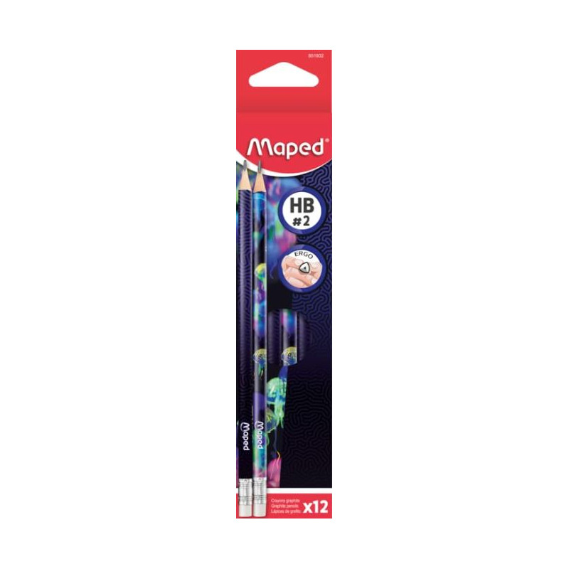 Maped 851802 - Crayon Deepsea HB avec gomme (12 pièces) - Vendu à l'unité