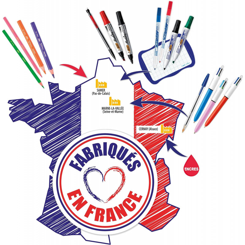 Marqueur effaçable à sec - Pointe ogive, largeur de trait 1,5 mm - Encre à base d'alcool : odeur neutre - Couleurs vives - S'efface facilement même après plusieurs jours ...