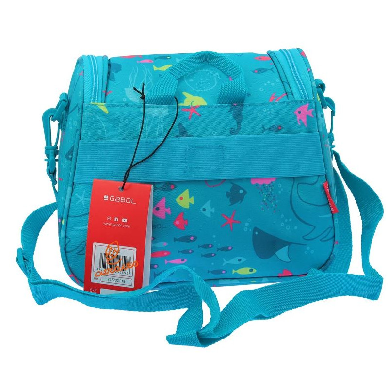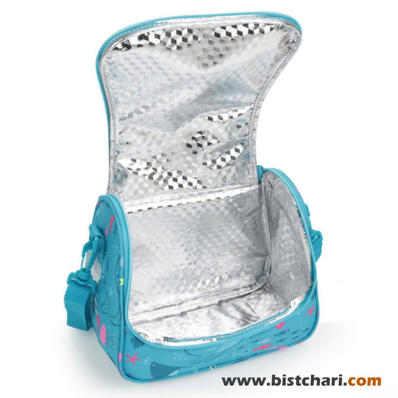 Sac repas isotherme ACQUA. Fabriqué en tissu haute densité de haute qualité, sans PVC. Sans BPA. Résistant à l'eau. Étiquette nominative incluse. Sangle pour fixation à un chariot ou une valise. Intérieur rembourré. Dimensions : 25 x 21 x 13 cm.