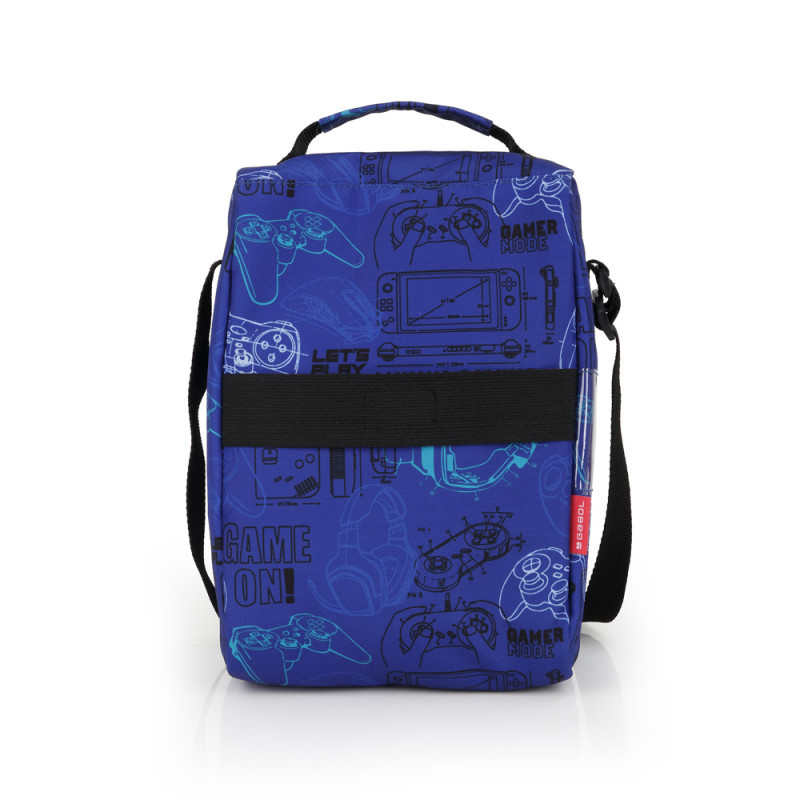Boîte à lunch isotherme Gabol GAMING. Sans BPA. Fabriquée en tissu haute densité de haute qualité, sans PVC ni BPA. Résistante à l'eau. Étiquette nominative incluse. Sangle pour fixation à un trolley ou une valise. Intérieur rembourré. Dimensions : 19 x 27 x 12 cm.