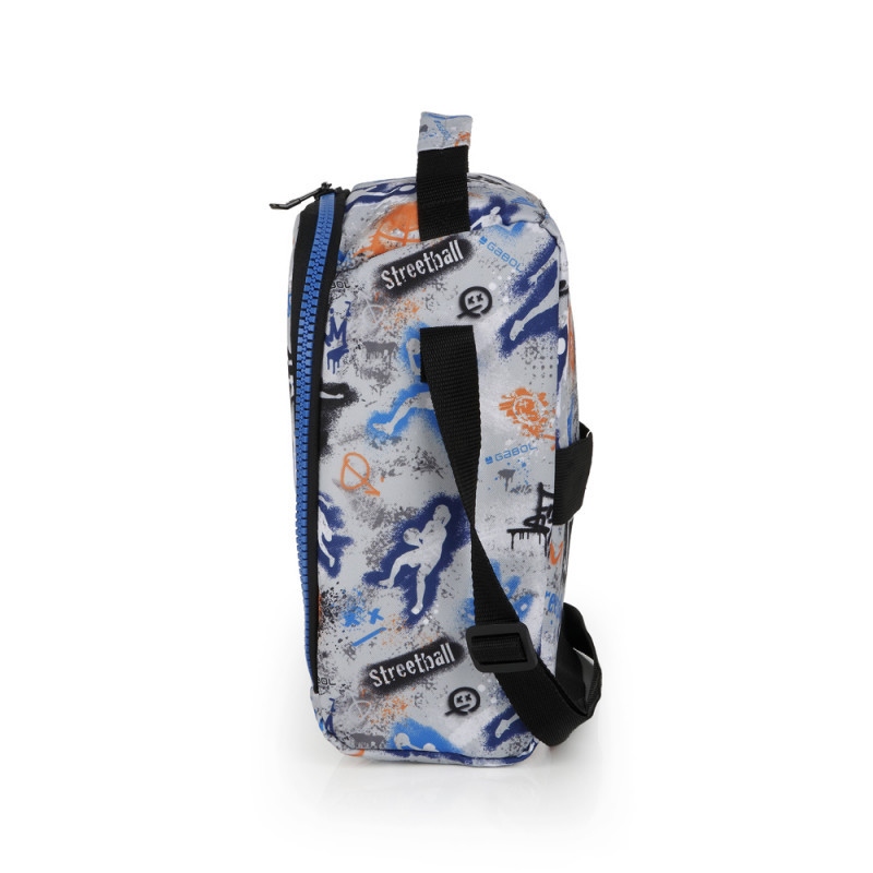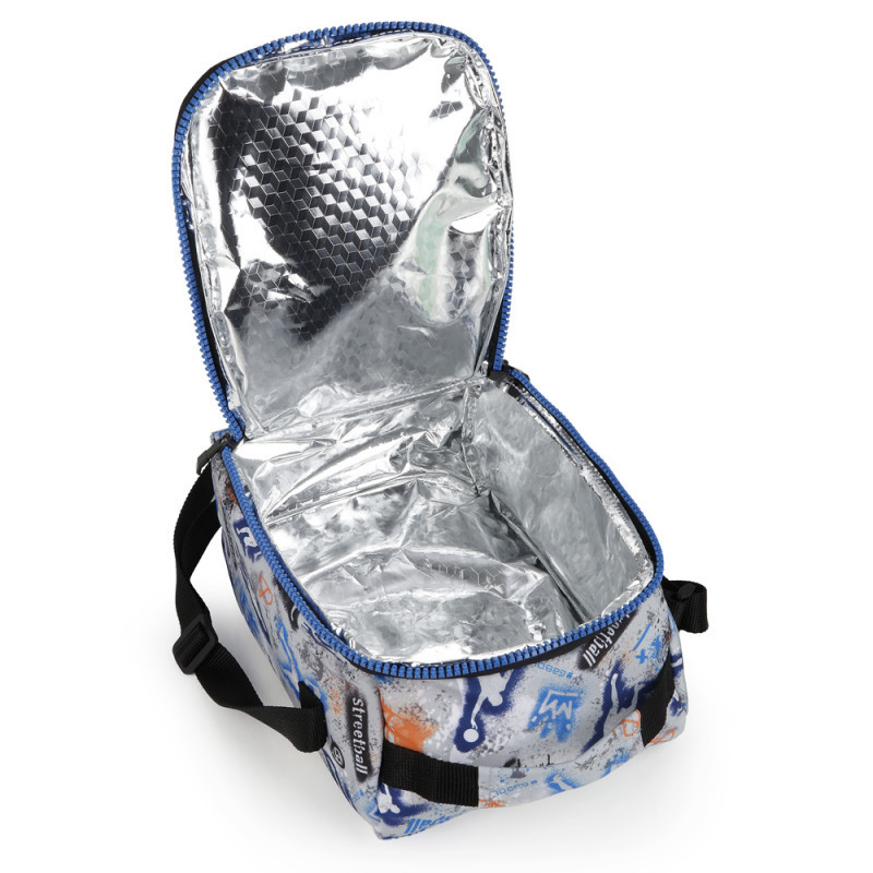 Boîte à lunch isotherme Gabol FREEDOM. Sans BPA. Fabriquée en matériau sans PVC ni BPA, avec un tissu haute densité de haute qualité. Résistante à l'eau. Étiquette nominative incluse. Sangle pour fixation à un chariot ou une valise. Intérieur rembourré. Dimensions : 19 x 27 x 12 cm.