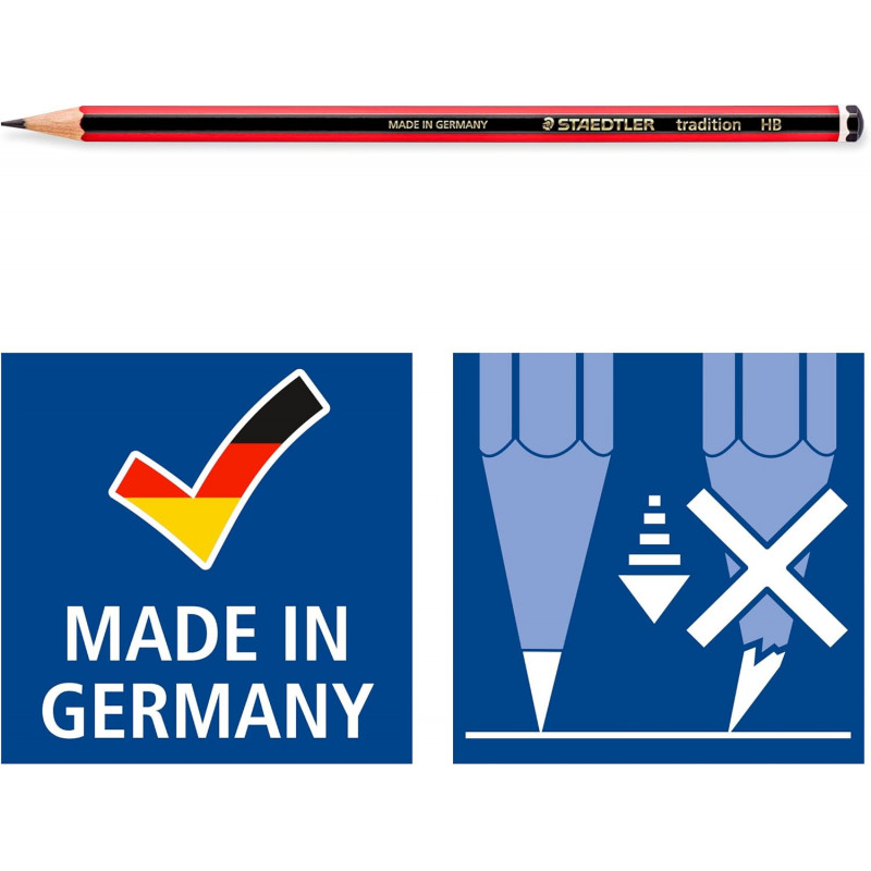 Crayon de haute qualité pour écrire, dessiner et esquisser Incroyablement résistant à la casse grâce à une formulation spéciale du plomb et au plomb super-lié Disponible en 12 degrés : 6B, 5B, 4B, 3B, 2B, B, HB, F, H, 2H, 3H, 4H Bois issu de forêts certifiées FSC et gérées durablement Recommandation d'affûtage : affûteur à cuve 511 005 ou affûteur en métal 510 10 pour des résultats d'affûtage idéaux
