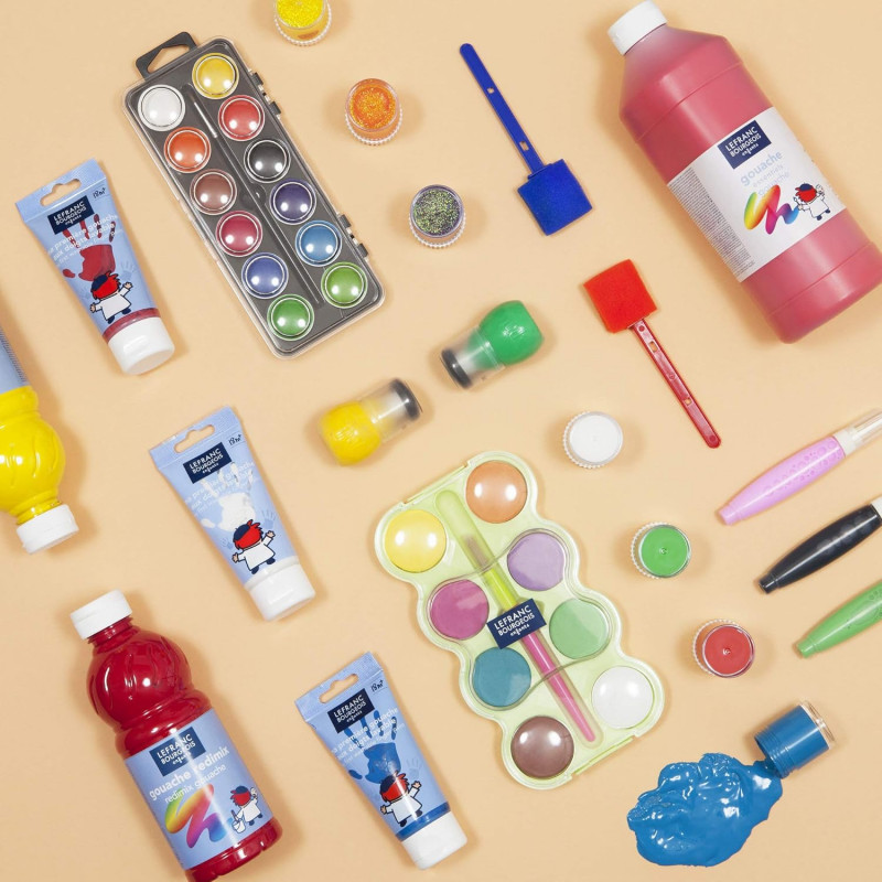 Des couleurs brillantes, à base de pigments, très couvrantes. Conçue pour les enfants, cette gouache est naturelle, non nocive et lavable en machine.