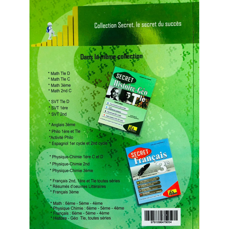 ‘’ SECRET‘’ est une collection d’annales au Programme interafricain allant de la 1ere à la Terminale. L’ouvrage met en avant les cours, les exercices et les sujets corrigés