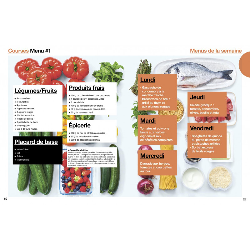 L'IG Bas, qu'est-ce que c'est ? Ce sont des aliments à l'indice glycémique bas ! 80 repas faits maison, sans gâchis et avec des produits de saison pour tous ceux qui ont décidé d'adopter le régime IG bas ! Pour chaque semaine, retrouvez : - La liste des courses et les menus de la semaine - Le déroulé des préparations à réaliser en 2 heures - Les conseils de notre diététicienne pour vous aider à mieux manger - Les étapes à réaliser le jour même en moins de 15 min Dans ce livre, vous trouverez 16 menus hebdomadaires complets, soit 80 repas équilibrés tous composés de plats qui privilégient les produits frais et de saison.