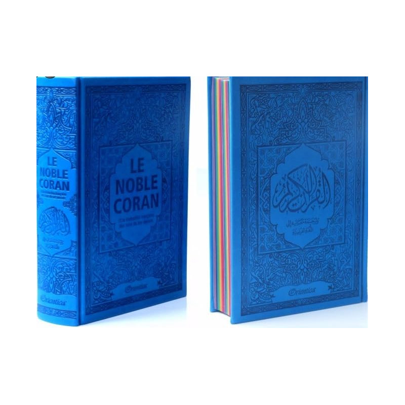Noble Coran avec pages Arc-en-ciel (Rainbow) - Bilingue (fr/ar) - Couverture Daim bleu