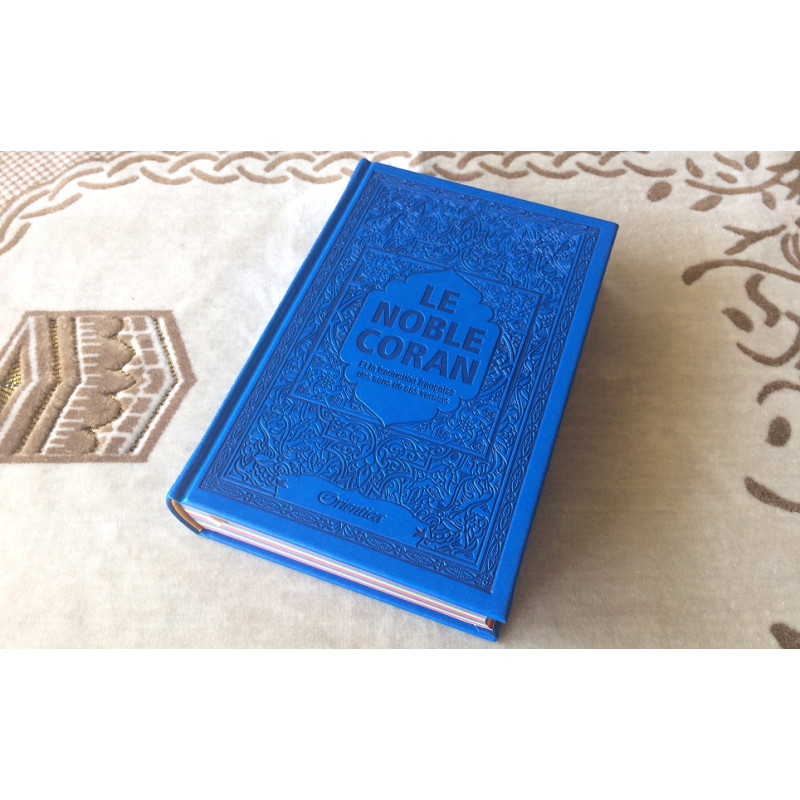 Ce Coran Arc-en-ciel (en anglais "Rainbow Quran") a une couverture cartonnée de type cuir, doux au toucher. Très jolie couleur bleue. Idéal pour offrir.