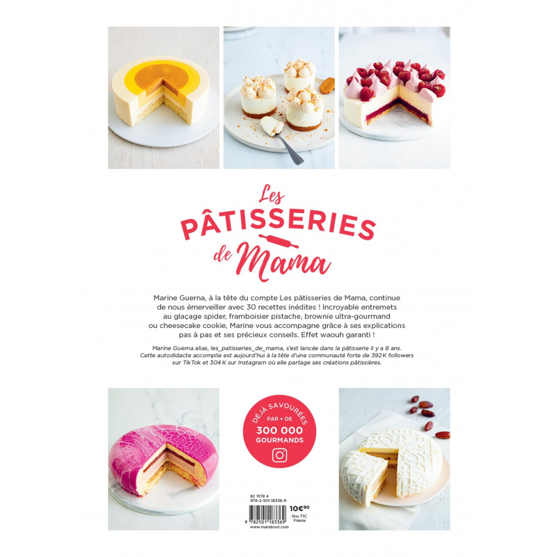 Marine Guerna, à la tête du compte Les pâtisseries de Mama, continue de nous émerveiller avec 30 recettes inédites ! Incroyable entremets au glaçage spider, framboisier pistache, brownie ultra-gourmand ou cheesecake cookie, Marine vous accompagne grâce à ses explications pas à pas et ses précieux conseils. Effet waouh garanti !