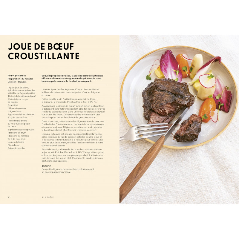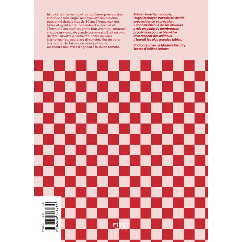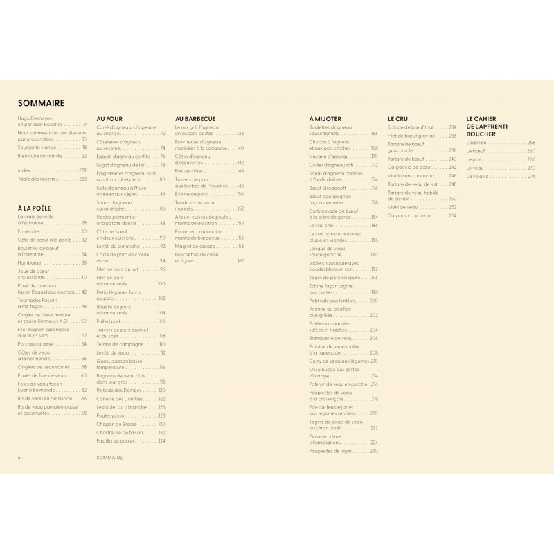 Et voici réunies les recettes iconiques pour cuisiner la viande selon Hugo Desnoyer, artisan boucher passionné depuis plus de 30 ans ! Amoureux des bêtes et ayant à cœur de défendre l'animal et l'éleveur, il est aussi un grand bon vivant qui mitonne chaque morceau de viande comme si c'était un plat de fête : bavette à l'échalote, côtes de veau à la normande, poulet du dimanche, filet de porc à la moutarde, tartare de veau, pot-au-feu ou encore boulettes d'agneau à la sauce tomate.