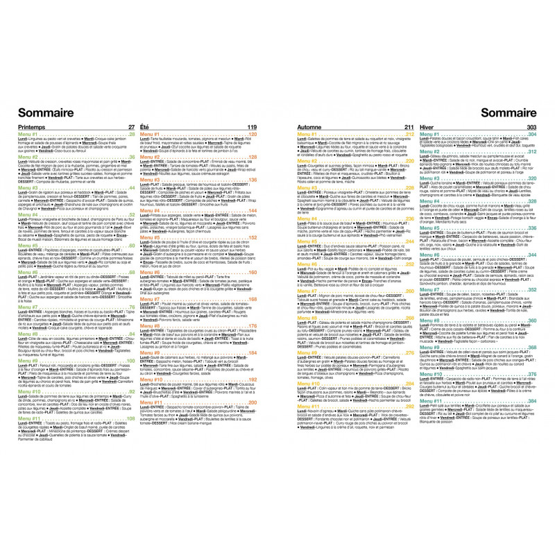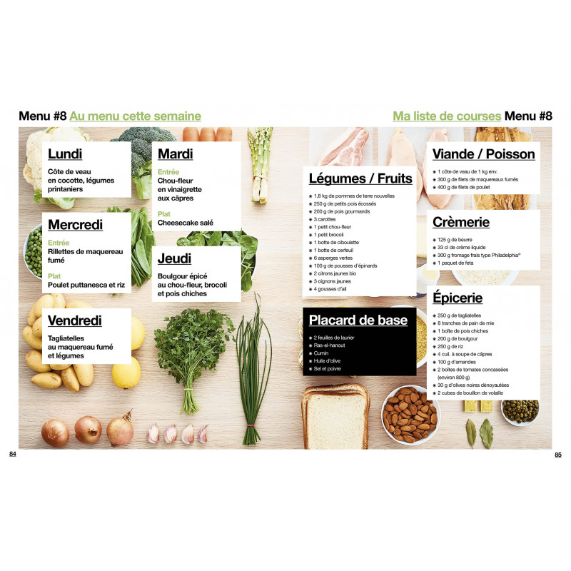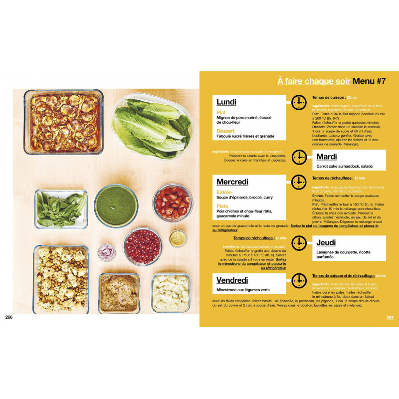 Nous allons vous donner toutes les clefs pour devenir un pro du batchcooking. - Des menus " libres " à créer soi-même quand vous vous sentez une âme de cuistot - Des menus " fixes " lorsque vous avez envie de vous laisser guider - 1 an de menus - Des plats qui privilégient les produits frais et de saison - Une cuisine 0 déchet où tout est consommé et les restes utilisés.