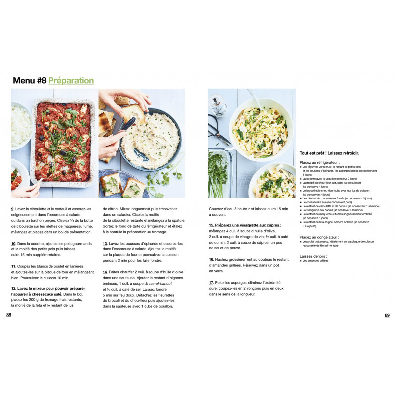 Voici LA bible du batchcooking que vous devez avoir dans votre cuisine ! Retrouvez tout ce dont vous avez besoin pour tenir 52 semaines en cuisinant uniquement le week-end : - Les listes de courses pour vous faciliter la vie - Les menus de la semaine pour vous faire saliver - Le déroulé des préparations à réaliser en moins de 2 h le week-end - Les étapes (rapides) à faire chaque soir pour préparer le repas sans crise de nerf Petite nouveauté dans la collection : vous pourrez créer vous-mêmes vos menus de la semaine.