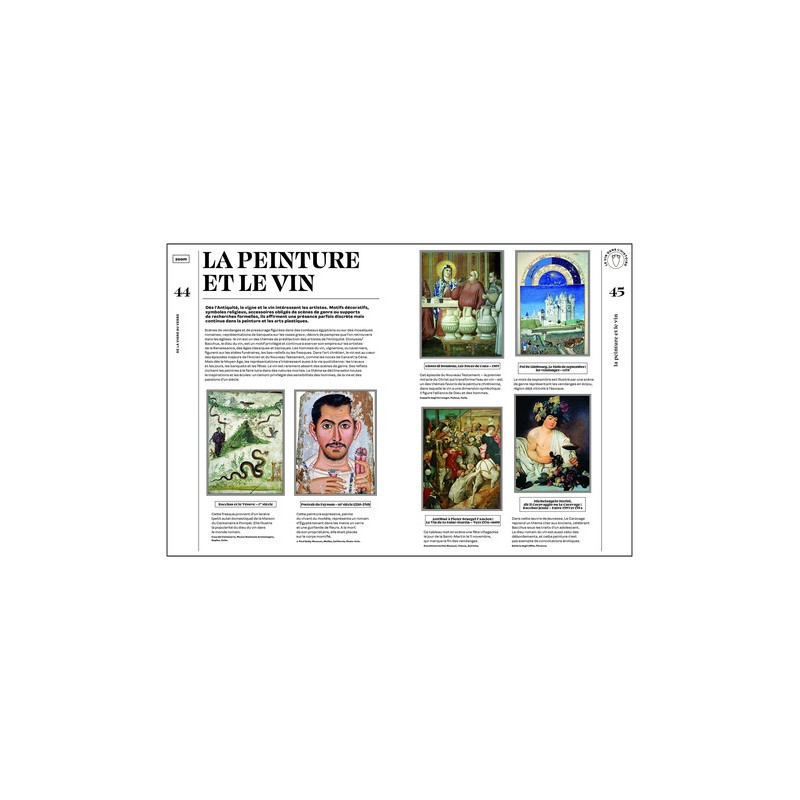L'univers du vin à la portée de tous ! Complète & détaillée Tout sur le vin de la vigne au verre L'histoire, de l'Antiquité à nos jours Les grands cépages et les terroirs Les nouvelles réglementations et le décryptage des étiquettes L'élaboration du vin, de la vigne à la bouteille L'achat, la dégustation et la conservation Les accords mets et vins La France & le monde Un tour du monde des vignobles Tous les vignobles français passés en revue : leur histoire, leurs cépages, leurs terroirs, leurs traditions viticoles, leur gastronomie...