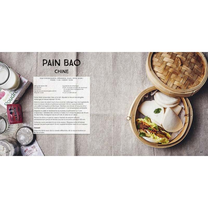 De l'Asie aux pays d'Europe, du Moyen-Orient à l'Inde, de l'Amérique latine aux Etats-Unis, retrouvez 100 recettes de pains tous différents les uns des autres et qui sont le symbole d'un partage culinaire. De la baguette à la pita, en passant par le lefse (pain norvégien à base de purée de pommes de terre), le tunnebröd (pain polaire suédois), le halla (pain traditionnel du shabbat) ou encore le gyeran-ppang (petit pain coréen enfermant un oeuf), voyagez à travers le monde et régalez-vous de ces spécialités culinaires.